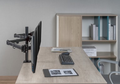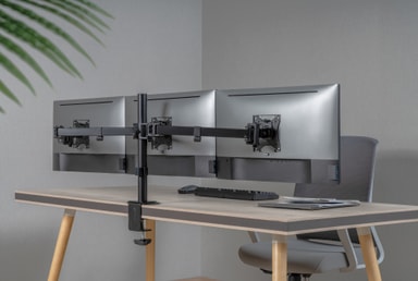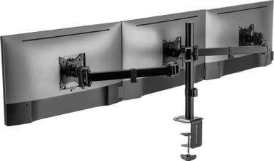 Vrid, sväng och ändra höjd på denna Essentials Tripple Static monitorarm som kan bära upp till 27" och 7 kg skärmar. Installera på en VESA 100x100- eller 75x75-hållare eller använd installationsmetoden Grommet. Se allt tydligt och på en gång.Läs mer om produkten