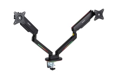 Två ergonomiska spelarmar som höjer skärmarna i lagom höjd för nacken och samtidigt frigör utrymme på skrivbordet då inget stort stativ behövs. Justerbar i alla riktningar för att passa dig.Läs mer om produkten