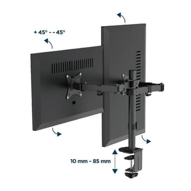 Justerbart bordsfäste för 2 monitorer 17-32"" med flexibla armar