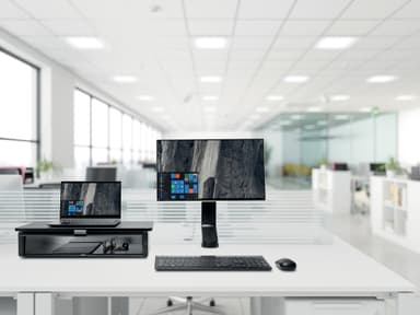 Kensington UVStand bildskärmsställ med UVC-rengöring passar för alla skärmar på upp till 27" och 18kg. Underdelen har tillräckligt med utrymme för att dölja ett fullskaligt tangentbord, mus eller telefon och sedan kan bakterier tas bort med UVC LED.Läs mer om produkten