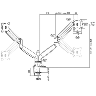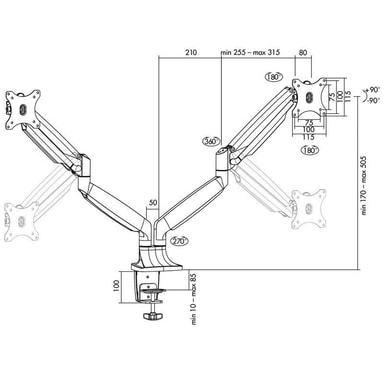 - Starka fästen tillverkade av stål, vilket ger en hållbar monitorarm med en maximal kapacitet på 9 kg per arm
