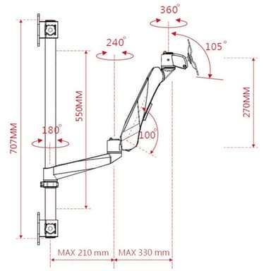 • · Typ av hållare: Justerbar i höjd, Tiltbar, Svängbar, Roterbar · Stödjer alla VESA-standarder till och med 100 x 100 mm · Lämplig för
