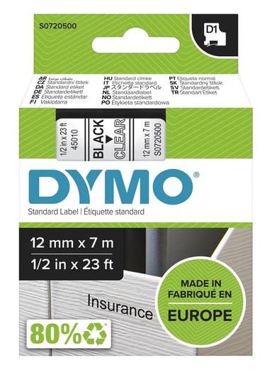 Authentic DYMO D1 label cassettes were specifically created for your LabelManager label makers and offer the performance and variety that you need for most labelling jobs. DYMO D1 label tape adheres to most clean, flat surfaces – including plastic, paper, metal, wood and glass – and feature easy-peel backing for trouble-free application. Versatile and durable, DYMO labels take the hassle out of home and office organisation.
