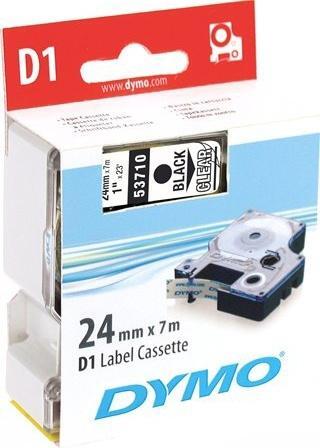 DYMO D1 märktejp standard 24mm, svart på transparent, 7m rulle (53710)