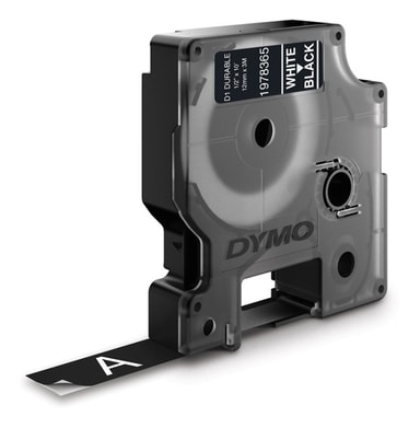 Dymo Durable D1 tape, 12mm, 3m D1 tejp för LabelManager Label Printers, vit text på svart tejp