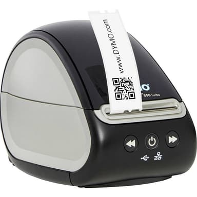 DYMO Labelwriter 550 Turbo Etikettskrivare Direkt termisk 300 x 300 dpi Etikettbredd (max.): 61 mm USBDirekt termoutskriftsteknik - inget dyrt bläck eller toner behövs Använd endast högkvalitativa BPA-fria autentiska DYMO® LabelWriter™-etiketter –Läs mer om produkten