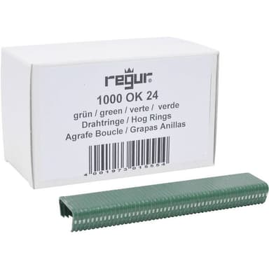 Häftklammer 1000 st Regur OK24GRUEN N/A Mått (L x B x H) 10 x 100 x 20 mmC-ringar rund armar Inre diameter på 7-11 mm vid stängt läge Kan användas med DOZ 24 och ro-Doz 24Läs mer om produkten