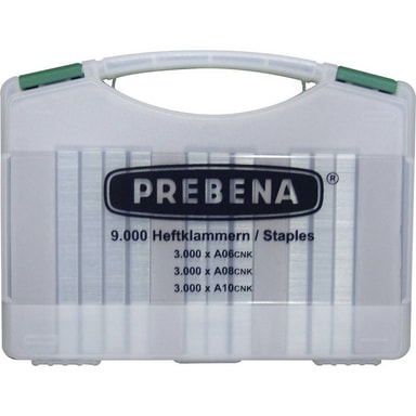 • PREBENA häftklamrar typ A i en praktisk väska och i tre olika storlekar! OBS! Vi beklagar att vi inte har hunnit översätta denna produkttext