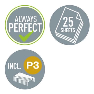 • Häftar upp till 25 ark papper (80 g/m2)