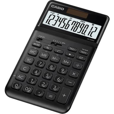 Casio JW-200SC-BK Bordsräknare Svart Display (ställen): 12 solcell, batteri (B x H x D) 109 x 11 x 184 mm12-siffrig LCD-display med räknekommandorvisning · Solcellsdrivet batteri · Färgat metallhölje · Vridbar display · Storlek (H x B x D) 1,1 x 10,9Läs mer om produkten
