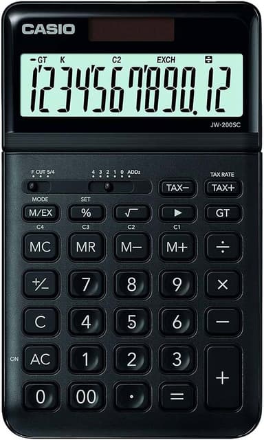 Casio JW-200SC Bordsräknare Svart Display (ställen): 12 solcell, batteri (B x H x D) 109 x 11 x 184 mmLäs mer om produkten