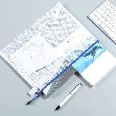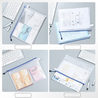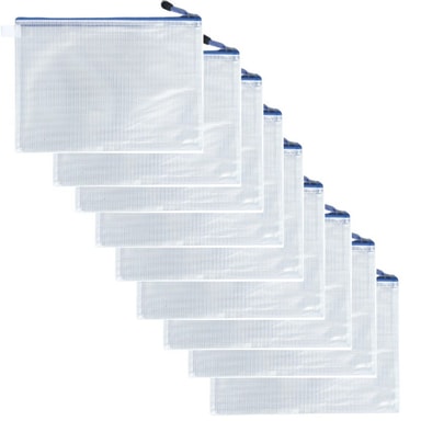 Sats med A4 och A5-plastpåsar med zip för att förvara papper och anteckningar, men även för att sortera och organisera andra föremål. Zippåsarna är av slitstarkt PVC och skyddar från slitage och smuts.