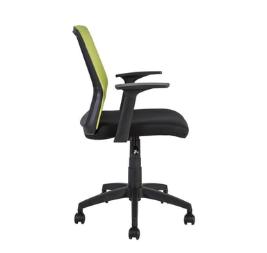 Arbetsstol ALPHA svart/grön. Sitsen är klädd med svart polyestertyg. Ryggstödet är täckt med grönt polyesternät. Pneumatisk sitshöjdjustering. Ramen och armstöden är gjorda av svart plast. Basen är gjord av svart plast. Hjulen är gjorda av plast, stift: 11mm. Höjd 87,5-95cm. Måtten på produkten är 60x55xH87,5-95cm. Viktkapaciteten är 120 kg.