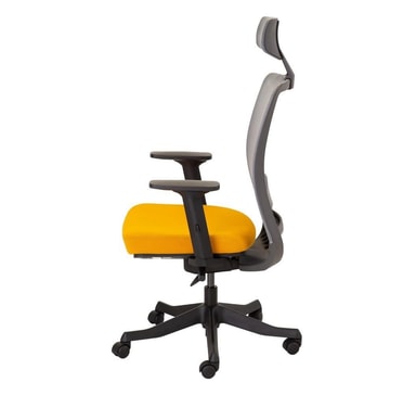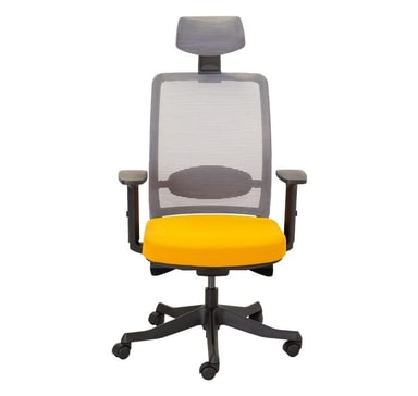 Arbetsstol ANGGUN gul. Sitsen är klädd med polyestertyg, 50 000 Martindale's. Rygg- och nackstödet är täckta med polyesternät som säkerställer god ventilation. Den automatiska tilt-spänningssynkroniserade mekanismen justerar själv lutningskraften till användarens vikt. Pneumatisk sitshöjdjustering. Justerbart svankstöd. Justerbart sittdjup 39,5-47,5cm. Armstöden är gjorda av svart plast. Djupet och vinkeln på armstöden är justerbara. Höjden på armstöden är justerbar 17,5-28cm. Höjden på nackstödet är justerbart. Svart 5-stifts plastfot, D70cm. Hjulen är gjorda av plast, 50mm. Höjd 116-130,5cm, ryggstödshöjd 52,5cm (med nackstöd 72-76,5cm), sitthöjd 44-54cm, sittdjup 39,5-47,5cm, sittbredd 45cm. Måtten på produkten är 70x70xH116-130,5cm. Viktkapaciteten är 120 kg.