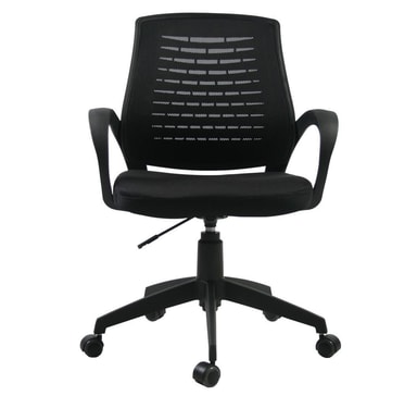 Arbetsstol BRESCIA svart. Sitsen är klädd med svart polyesternät, 30 000 Martindale's. Ryggstödet är täckt med svart polyesternät. Ramen är svart. Pneumatisk sitshöjdjustering. Armstöden är gjorda av plast. Basen är gjord av svart nylon. Stolen har gummihjul, stift: 11mm. Sitthöjden är 46-56cm, sittdjup 50cm, sittbredd 49cm. Måtten på produkten är 61,5x57xH91-102cm. Viktkapaciteten är 90 kg.