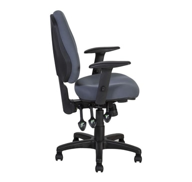 Arbetsstol SAGA grå. Den ergonomiskt utformade stolen är mångsidig och justerbar på flera sätt. Sitsen är bekväm och har mjuk stoppning. Sits och ryggstöd är klädda med grått polyestertyg, 50 000 Martindale's. Ytterskal i svart plast. Stolen har en synkroniserad mekanism, justerbar tiltspänning och tiltlåskontroll. Pneumatisk sitshöjdjustering. Möjlighet att justera sits och ryggstöd oberoende av varandra. Rygghöjdsjustering 49-56,5cm, rygglutningsjustering. Sittdjupet och lutningsvinkeln är justerbara. Framlutning av sätet. Armstöden i stål är täckta med svart plast och har bekväma armkuddar av polyuretan. Armstöden är justerbara på tre sätt. Djupet och vinkeln på armkuddarna är justerbara. Höjden på armstöden är justerbar 19,5-29cm. Svart 5-stifts bas av polypropenplast, D64cm. Stolen har nylonhjul, 50mm. Höjd 95,5-115cm, sitthöjd 46,5-49cm, sittdjup 39-44cm, sittbredd 44cm. Måtten på produkten är 64x64xH95,5-115cm. Viktkapaciteten är 120 kg.