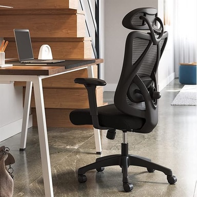 Ergonomisk kontorsstol med hjul – justerbart stöd och lutningsfunktion - SvartLäs mer om produkten