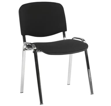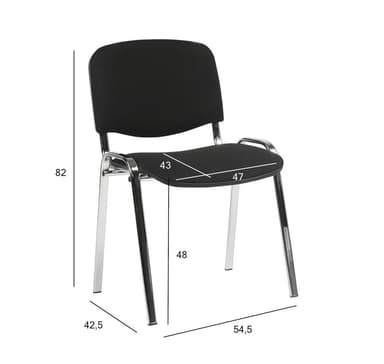 Gäststol ISO svart/krom. Sits och ryggstöd är klädda med svart polyestertyg, 30 000 Martindale's. Ramfärg: kromad. Stolarna är stapelbara vilket gör dem lätta att förvara. Kontaktdon för sammankoppling av en stolsrad finns som tillbehör. Mått: höjd 82cm, sitthöjd 48cm, sittdjup 43cm, sittbredd 47cm. Måtten på produkten är 54,5x42,5xH82cm.