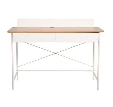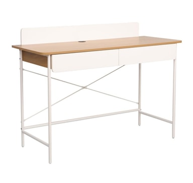 Skrivbord FERDIE med 2 lådor 120x48xH88cm, ask/vit.Material: melaminskiva.Färg: ask/vit.Bordets ben och stomme är gjorda av metall och avslutade med vit pulverlack.Läs mer om produkten