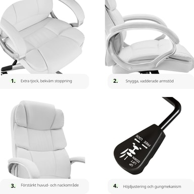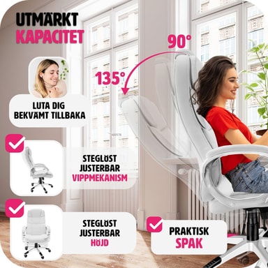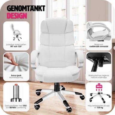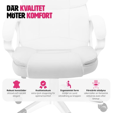 När det gäller kvalitet och design, skiner denna ergonomiska kontorsstol verkligen. Den är täckt av ett slitstarkt konstläder som är både hållbart och lätt att rengöra. Dessutom erbjuder den extradubbla stoppningen en lyxig och bekväm sittupplevelse som är svår att matcha.
