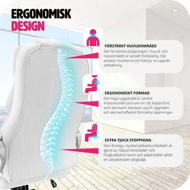 Letar du efter den perfekta kombinationen av komfort och ergonomi för ditt hemmakontor? Denna ergonomiska kontorsstol erbjuder just det och mycket mer. Med en extradubbel stoppning och en ergonomiskt formad sitt- och ryggyta, är denna kontorsstol designad för att ge optimalt stöd och komfort under långa arbetsdagar.