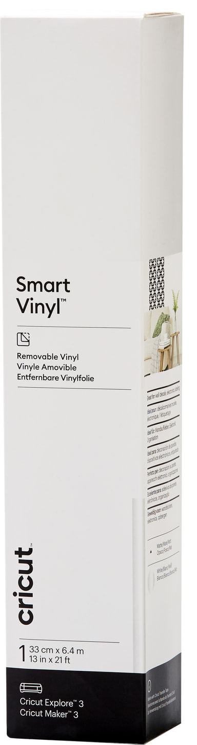 Kom igång med dina kreativa projekt med Cricut Smart Vinyl Removable ark 33 x 640 cm. Detta material fungerar på olika ytor och kan tas bort enkelt utan att lämna rester. För användning med Cricut Explore 3 och Cricut Maker 3, ingen skärmatta behövs.Läs mer om produkten
