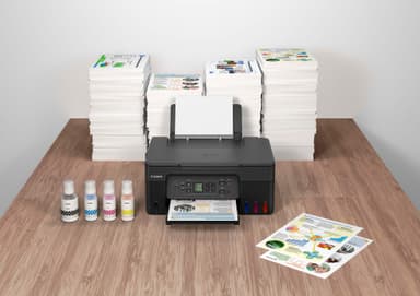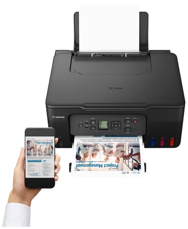 Skriv ut verklighetstrogna foton och skarpa dokument med Canon Pixma G3570 AIO färgbläckstråleskrivare. Skrivaren använder kostnadseffektiva bläckbehållare för enkel bläckpåfyllning och har inbyggd WiFi för mobil och molnbaserad utskrift och skanningLäs mer om produkten