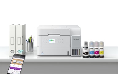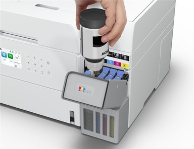 Spara upp till 95 % av utskriftskostnaderna med Epsons EcoTank-skrivare utan bläckpatroner. De inbyggda bläckbehållarna med hög kapacitet är lätta att fylla på tack vare de specialutformade bläckflaskorna.Läs mer om produkten