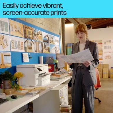 HP OfficeJet Pro 9730e AIO bläckstråleskrivare ger dig snabb och exakt utskrift, skanning och kopiering. Den kan skriva ut upp till A3-format och följer P3-omfånget för exakta färger. Kan enkelt fjärrstyras via WiFi, Apple AirPrint eller mobilapp.Läs mer om produkten