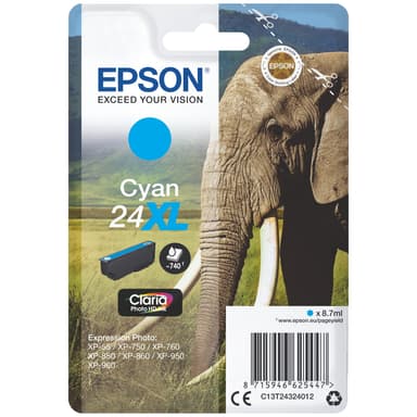 Epson Claria Photo HD 24XL bläckpatron i cyan är kompatibel med Epson Expression Photo-serien med bläckstråleskrivare och passar bra för att skriva ut fotografier. Den ger utskrifter på upp till ungefär 740 sidor.Läs mer om produkten