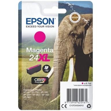 Epson Claria Photo HD 24XL bläckpatron i magenta är kompatibel med Epson Expression Photo-serien med bläckstråleskrivare och passar bra för att skriva ut fotografier. Den ger utskrifter på upp till ungefär 740 sidor.Läs mer om produkten