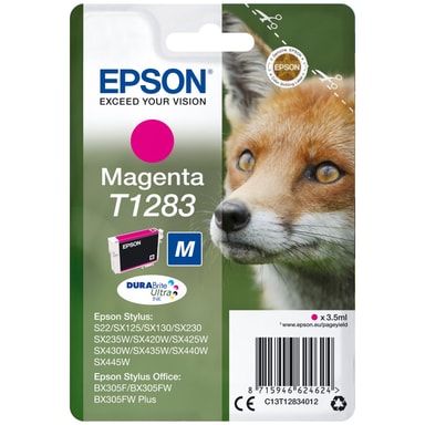 Ersättningspatronen Epson DuraBrite Ultra T128 bläckpatron innehåller hållbart pigmenterat bläck i magenta för Epson Stylus och Epson Stylus Office-serien med bläckstråleskrivare – perfekt för alla dina utskrifter.Läs mer om produkten