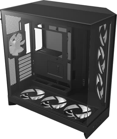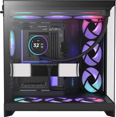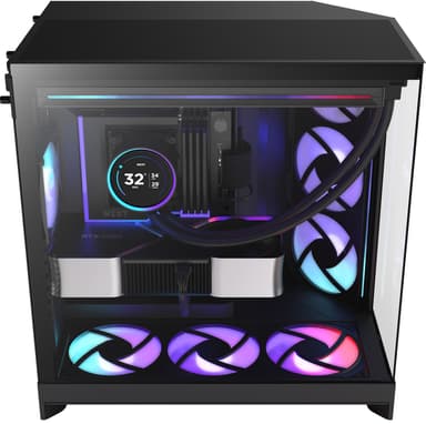NZXT H9 Flow RGB+ 2025 PC-chassi har 3 medföljande fläktar, omslutande paneler i härdat glas och dubbelkammardesign ger detta chassit optimal kylning i en snygg design.Läs mer om produkten