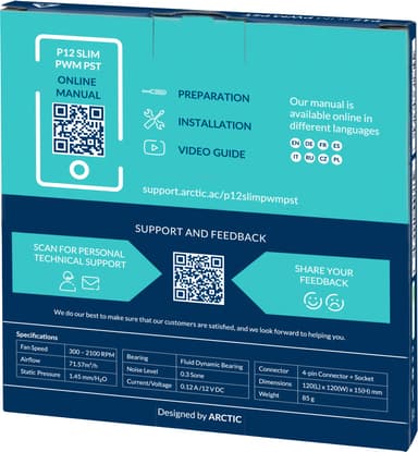 Säkerställ en tyst och effektiv kylning för din Arctic P12 Slim 120 mm PWM PST-fläkt. Den fokuserade luftströmmen säkerställer hög statiskt flöde med låga ljudnivåer.Läs mer om produkten