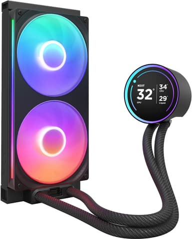 Kyl din processor effektivt med NZXT Kraken 280 Elite V2 RGB CPU-vätskekylare. Inkluderar 280 mm radiator, 140 mm PWM-fläktar x2, och NZXT Turbine-pump för stabila temperaturer vid hög belastning.Läs mer om produkten