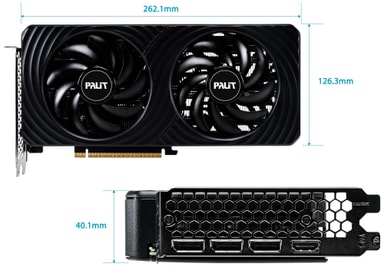 PALIT GeForce RTX 5060 Dual 8GB GDDR7 grafikkort erbjuder kraftfull NVIDIA Blackwell-prestanda, dubbla 95 mm-fläktar för kylning, elegant svart design, RGB-belysning och en kompakt passform med 2 kortplatser, perfekt för små byggen.Läs mer om produkten