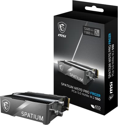 MSI Spatium M570 Pro FROZR M.2 SSD erbjuder nästa generations datalagring med läshastigheter på 12400 MB/s och skrivhastigheter på 11800 MB/s via M.2 NVMe PCIe 5.0, med svala temperaturer med sin FROZR-kylningslösning.Läs mer om produkten