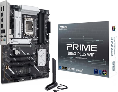 ASUS PRIME B860-PLUS WIFI moderkort erbjuder Wi-Fi 6E, dubbla M.2-platser med PCIe 5.0 och 4.0, DDR5-stöd upp till 192 GB, USB-C 3.2 Gen 2x2 och Realtek 2,5 Gb Ethernet för hög prestanda och anslutning.Läs mer om produkten