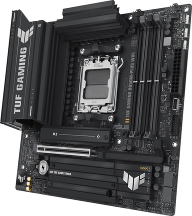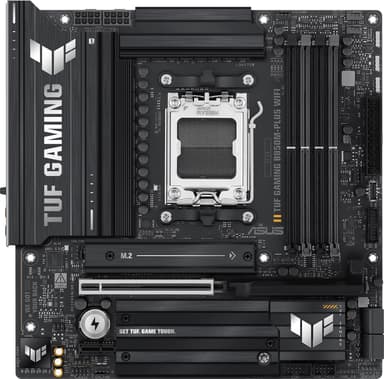ASUS TUF GAMING B850M-PLUS WIFI moderkort erbjuder robust prestanda med DDR5-stöd, PCIe 5.0 x16, WiFi 7 och 192 GB maxminne, perfekt för processorer i AMD 9000-serien, med dubbelkanalsljud och omfattande anslutningsmöjligheter.Läs mer om produkten