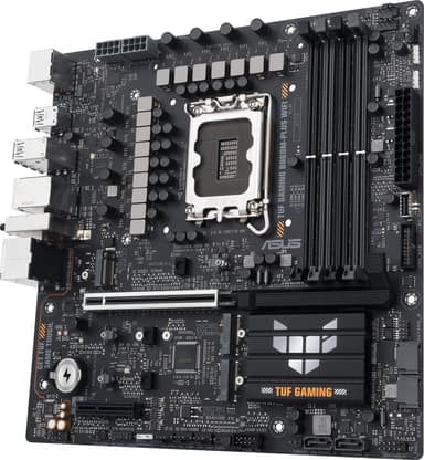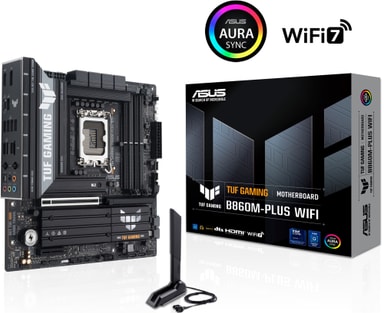 ASUS TUF GAMING B860M-PLUS WIFI moderkort erbjuder Intel B860-chipset, WiFi 7, DDR5-stöd upp till 192 GB, PCIe 5.0 x16 och 2,5 Gb Ethernet, perfekt för avancerade gaminguppsättningar.Läs mer om produkten