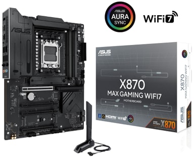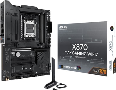 ASUS X870 MAX Gaming Wi-Fi7-moderkort är ett kraftfullt ATX-moderkort byggt för spelare. Det har stöd för de senaste AMD AM5-processorerna och drivs av ett AMD X870-chipset.Läs mer om produkten