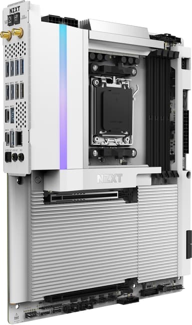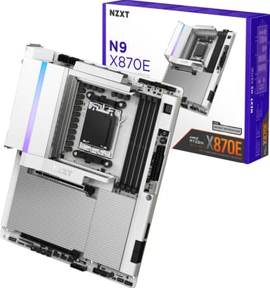 NZXT N9 X870E moderkortet erbjuder överlägsen anslutning med Wi-Fi 7, Bluetooth 5.4, stöd för DDR5-minne, har PCIe 5.0 och AMD X-chipset för utmärkt prestanda och expansionsmöjligheter.Läs mer om produkten