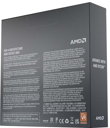 Funktioner: - 6 kärnor/12 trådar - 4,7 Ghz bas, 5,3 GHz turbofrekvens - Upplåst för överklockning - 6 MB L2 + 32 MB L3-cache - AM5-uttag - 105 W termisk designeffekt - TSMC-teknik med 5 nm litografiprocess - Stöd för DDR5 RAM upp till 5200 MHz