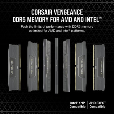 Corsair Vengeance DDR5 RAM 32GB 6000MT/s CL36, optimerat för AMD-moderkort, utrustat med högpresterande kretsar, inbyggd spänningsreglering och en solid aluminiumkylare för effektiv kylning och överklockning, med stöd för Intel XMP & AMD EXPO.Läs mer om produkten