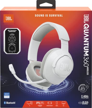 JBL Quantum 360 Wireless gaming headset ger en uppslukande spelupplevelse med Quantum surroundljud och kraftfulla 40 mm högtalare. Dessutom hjälper 22 batteritid vid oavbrutna långa spelsessioner.Läs mer om produkten