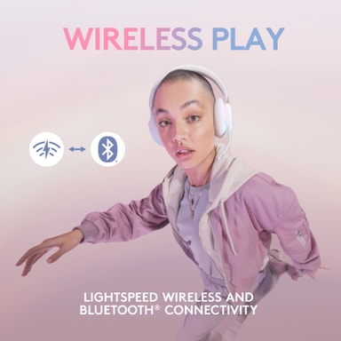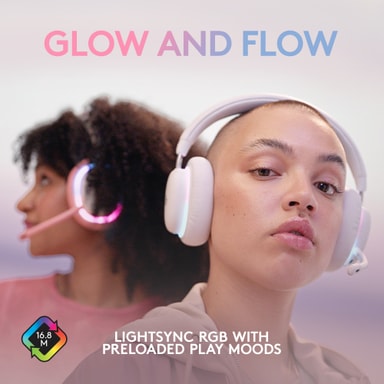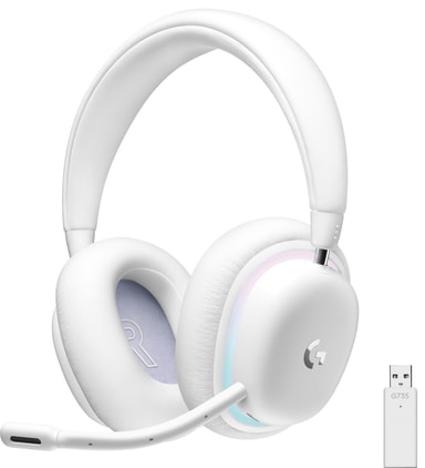 Logitech G G735 gaming-headset LTG735OWHI, med trådlös LIGHTSPEED och LIGHTSYNC RGB, kommer se till att du får ett utmärkt uppslukande spelljud och att du kan kommunicera med ditt lag enkelt. Det har 16 h batteritid och Blue Vo!ce-mikrofonfilter.Läs mer om produkten