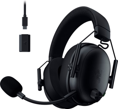 Razer Blackshark V3 trådlösa gamingheadset är utrustat med Razer TriForce Titanium 50mm Drivers Gen-2, tre anslutningslägen med Razer HyperSpeed Wireless Gen-2, en batteritid på 70 timmar och THX Spatial Audio för en precis ljudbild.Läs mer om produkten