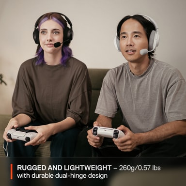 SteelSeries Arctis Nova 3 trådlösa gaminheadset för PlayStation har 40 mm-element, USB-C- och Bluetooth-anslutning, 40 timmars batteritid, kompatibilitet med flera plattformar, förinställda spelljudprofiler, avtagbar mikrofon och kontroller för öronkåporLäs mer om produkten