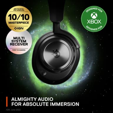 Spela som en professionell gamer med SteelSeries Arctis Nova Pro trådlöst gaming headset. Nova Pro Acoustic-systemet består av 360-graders rumsligt ljud och Sonar Audio Software Suite kommer ge dig ett övertag.Läs mer om produkten