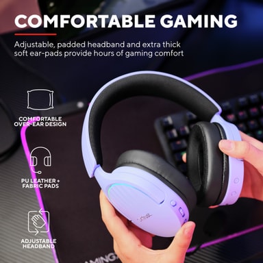 Trust GXT491P Fayzo trådlösa gamingheadset har kraftfulla 50 mm-element, dubbla anslutningslägen, 22 timmars batteritid, kompatibilitet med flera plattformar och 7.1 surroundljud för en uppslukande ljudupplevelse.Läs mer om produkten